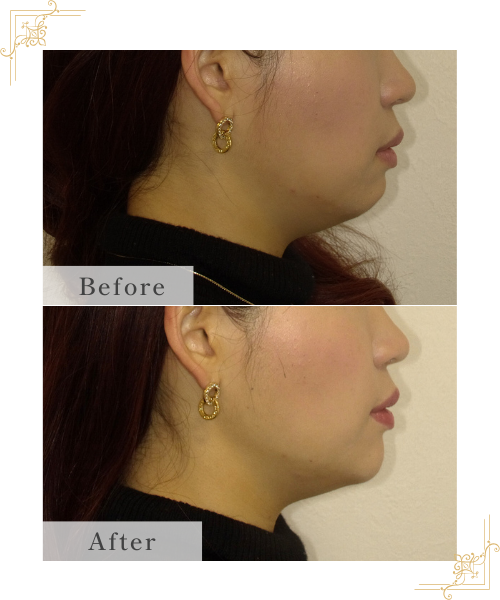 こちらの患者様は、当院で歯科矯正治療を受けられていた20代女性の方です。矯正治療が終了し歯並びは整いましたが、横顔を見た際の顎下のもたつきが気になり、ご相談に来られました。